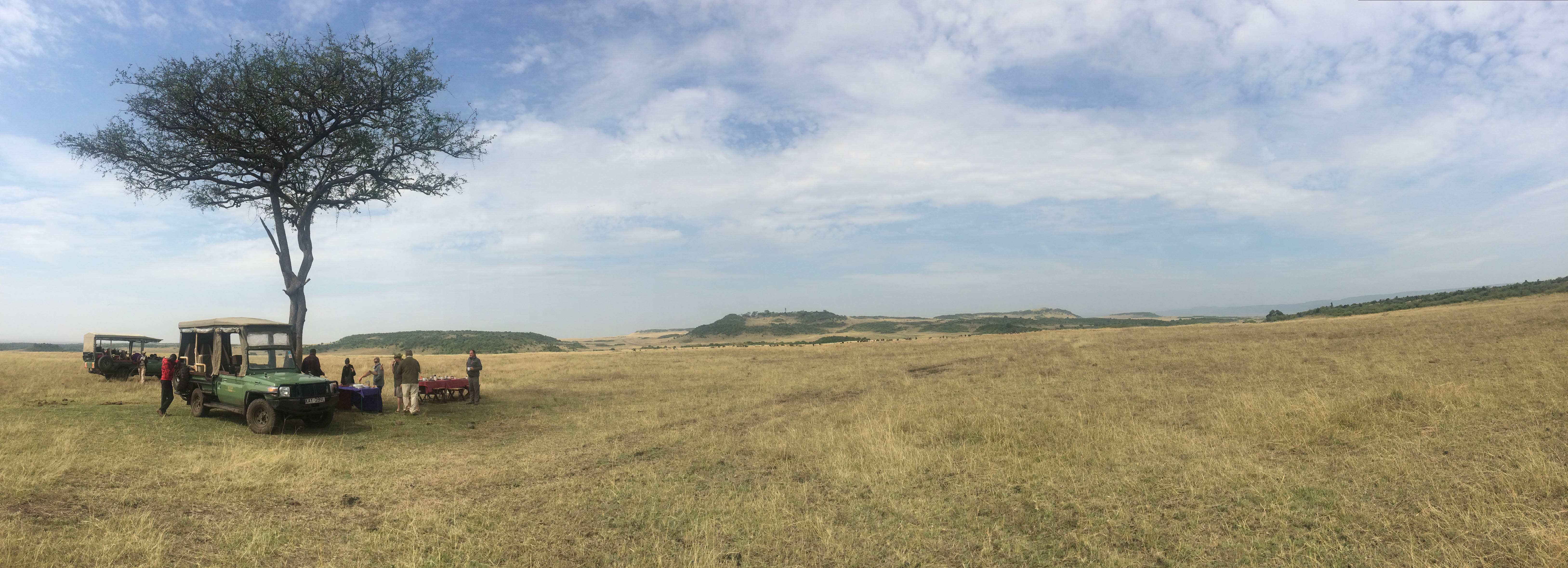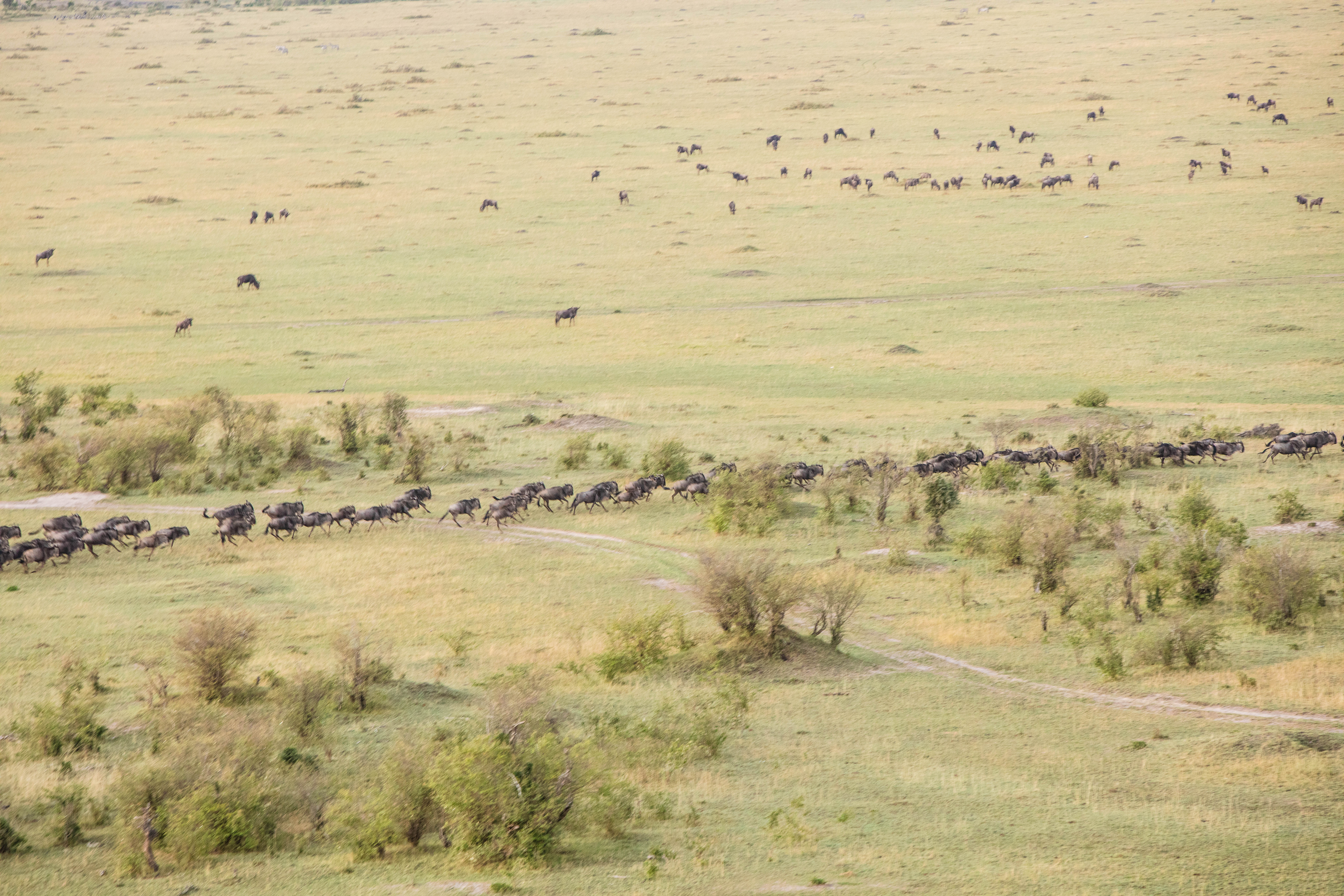 We have an hour flight over the migration. We see most of the animals including lion, hyena and vultures. we see great wildebeest, buffalo and zebra. We finish with breakfast noting the awkward landing in the gathering breeze.