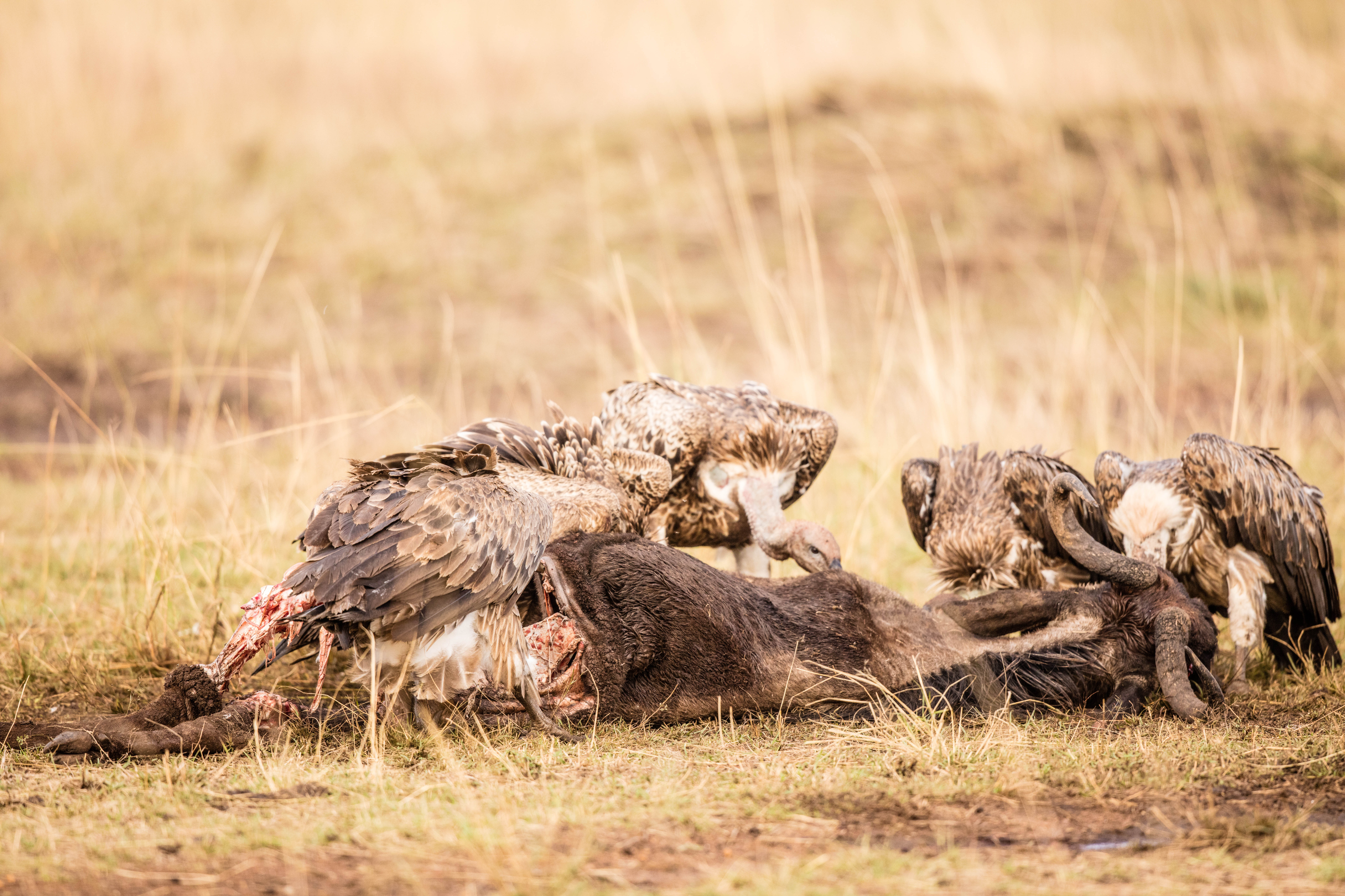 We see at least five vulture species. (White backed, lappet face, Ruppelli gryphon, white headed and hooded ) The so-called soap of the savannah make the best of the migration as it hits the Mara plains. Carcasses both fresh and old abound as evidence of the conveyer belt feeding, sushi style.