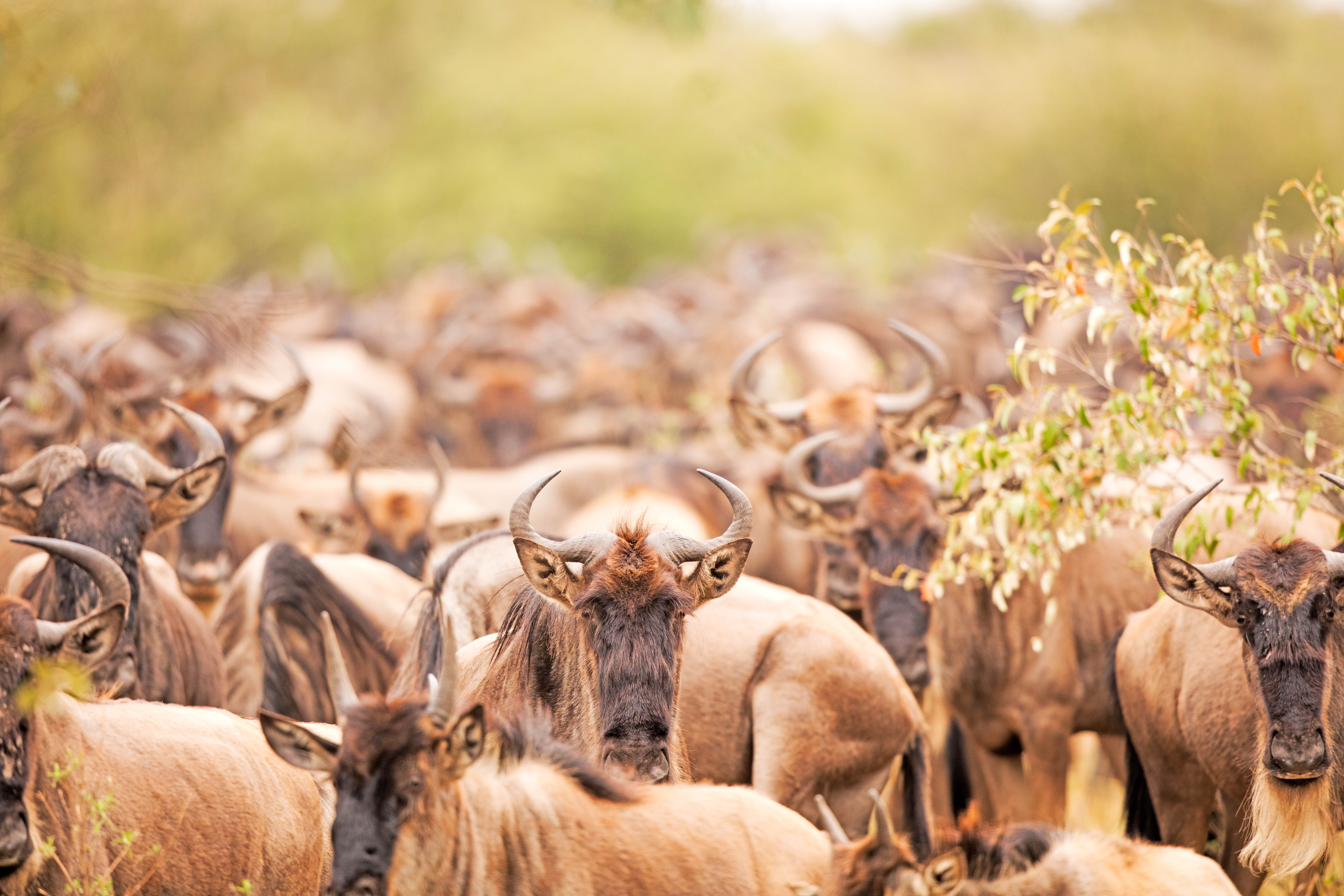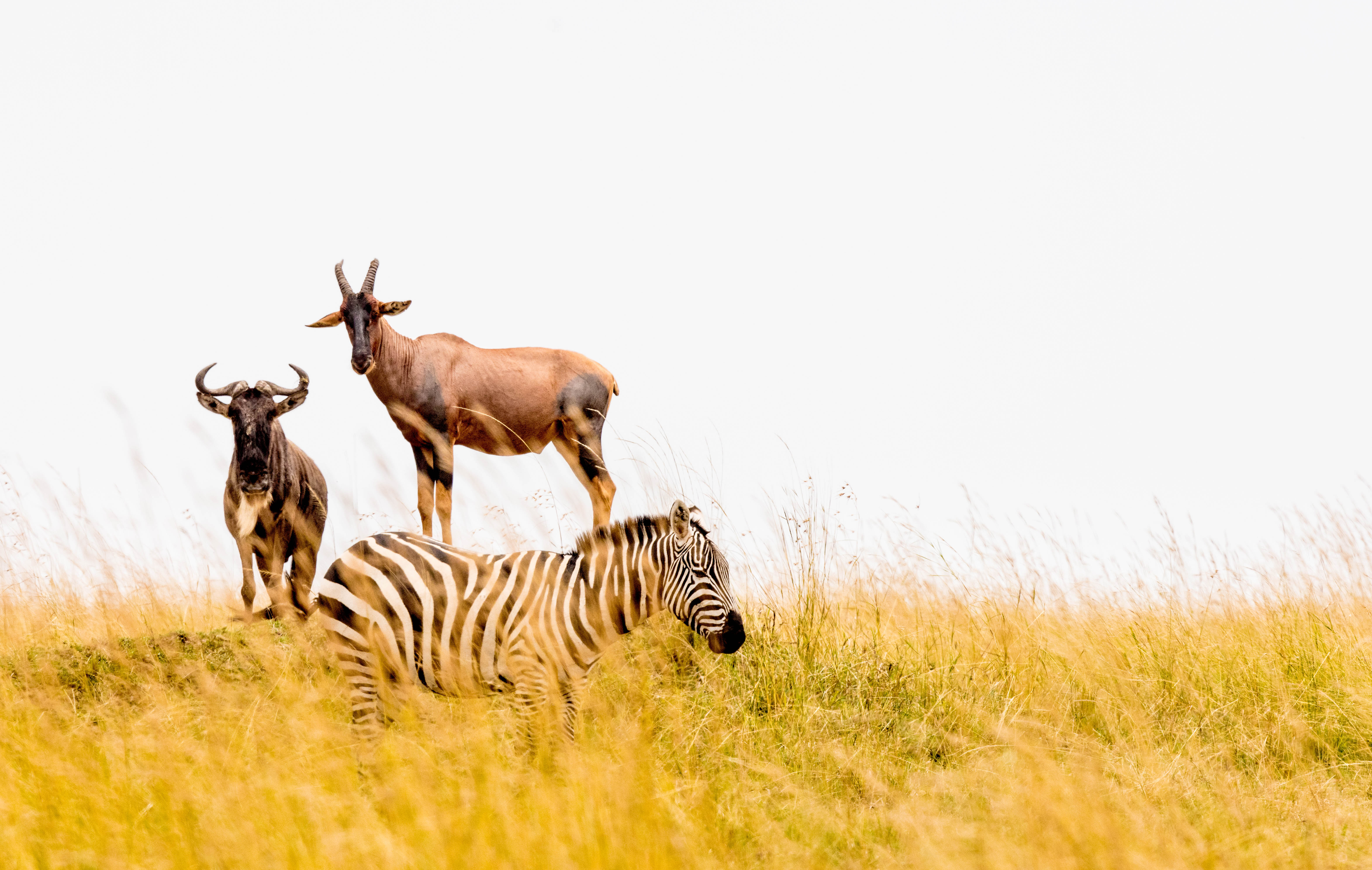 Apart from the circa 2 million wildebeest on the move there also are herds of zebra and topi the fleet-footed cousins of the tsesebe and the red hartbeest. On the plains there are also giraffe, buffaloe, eland and both Grant and Thompson’s gazelle. The latter is the main diet of the leopard and cheetah.