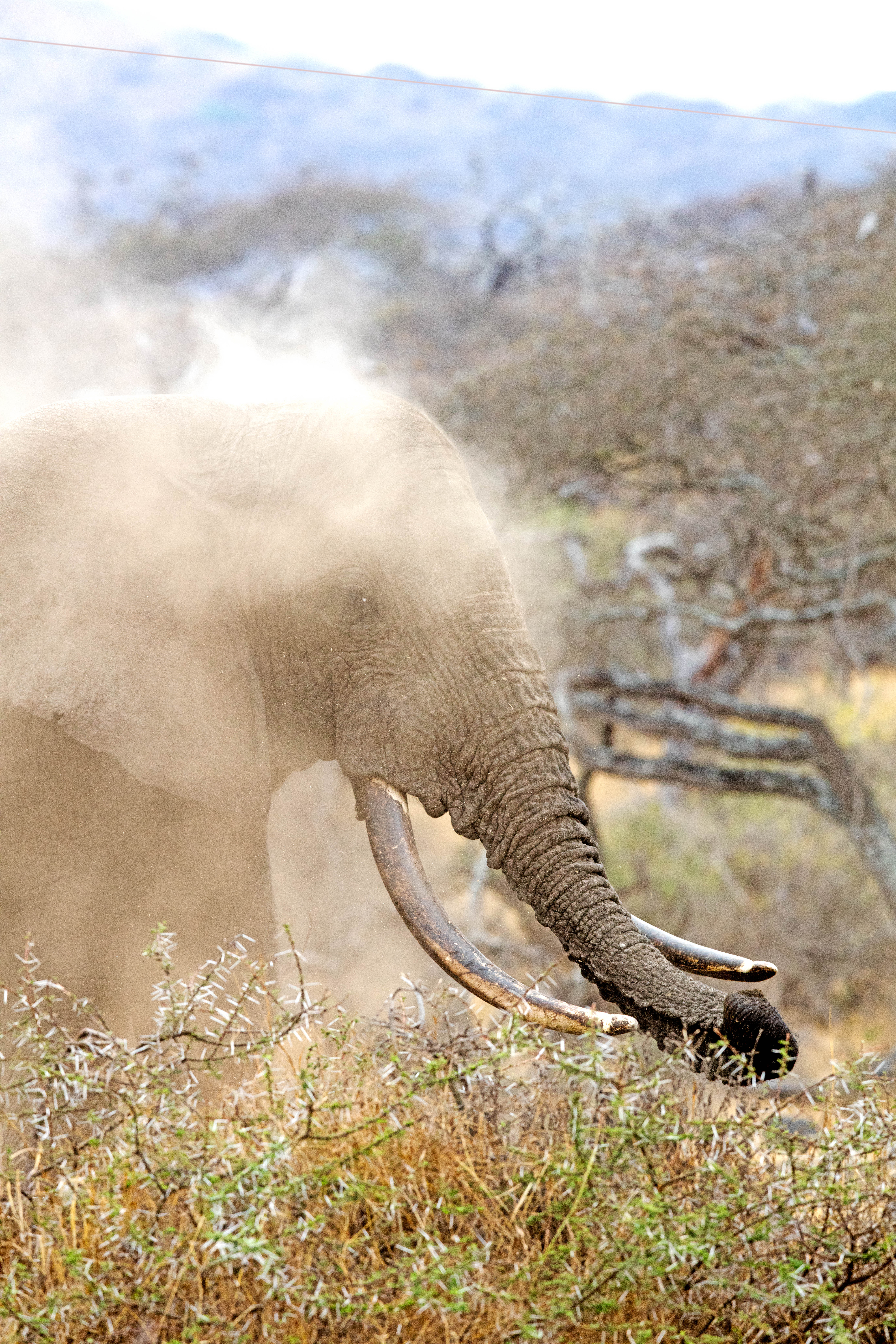 The afternoon we take some shots of the Van der Decker Hornbill and other birds. We try and get some predator, but to no avail. At dusk we hear from a passing ranger that the local biggest tusker, One Ton and his “askaris” are nearby . We find the awesome big one in fast fading light, but not too late to sneak in some great shots even with flash. A fabulous end to the day, which we celebrate again in good spirits.